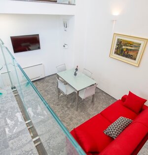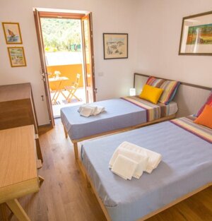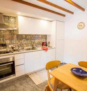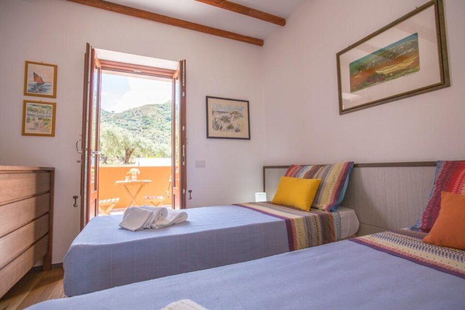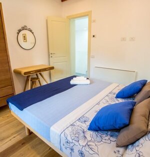 Ampio appartamento su due livelli composto da una camera matrimoniale, una doppia/matrimoniale, soggiorno con divano letto, smart-TV e caminetto, cucina abitabile con piano cottura a induzione, forno, frigorifero con congelatore, frullatore, bagno con doccia e ripostiglio con lavatrice e ferro da stiro. Tutti gli ambienti sono dotati di aria condizionata e riscaldamento.
