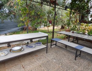 Il terreno circostante è coltivato biologicamente e vengono prodotti olio extravergine di oliva di altissima qualità e agrumi.